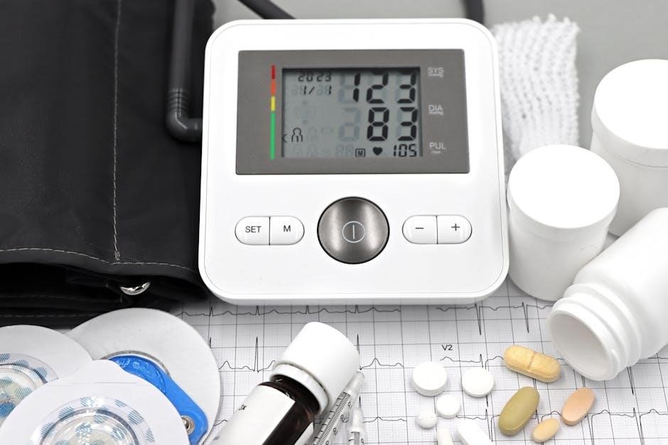 Beta-blockers may also be prescribed, particularly in specific patient groups. Treatment is individualized, considering factors like age, ethnicity, and co-existing conditions, as highlighted in NHS resources. Regular monitoring, using blood pressure charts often available as PDFs, is vital to assess treatment effectiveness and adjust dosages accordingly. NHS PDFs emphasize adherence to prescribed medication regimens for optimal blood pressure control.